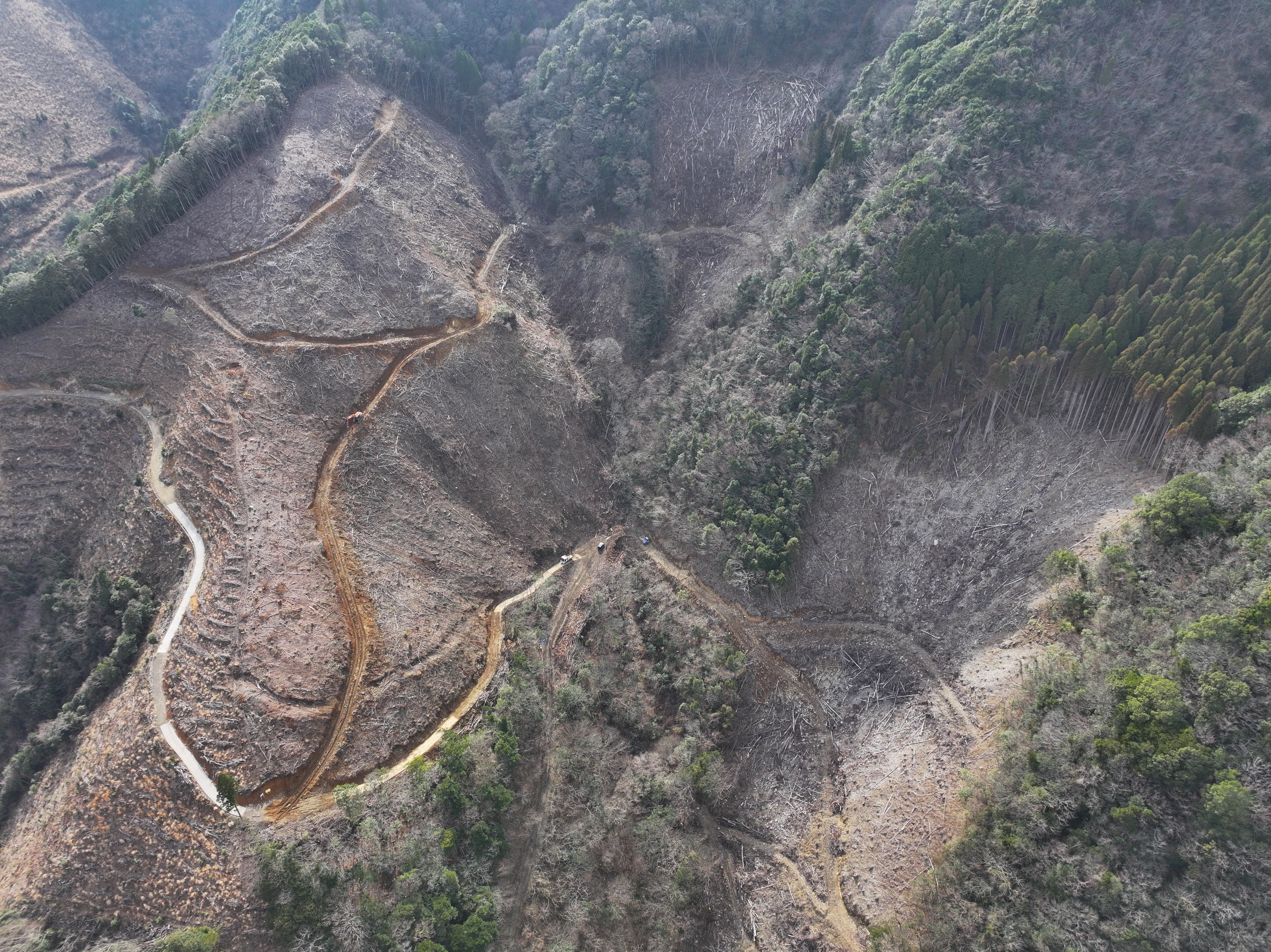 当社の強みは、その山々に適した伐採計画を念密に立てる事です。地域の山林資源を活かすために、環境に配慮した伐採計画を立案し、実行しています。これにより、持続可能な林業を推進し、地域の景観や生態系を守りながら木材資源を有効活用しています。私たちは、山に寄り添いながら、未来につながる木材事業を展開しています。